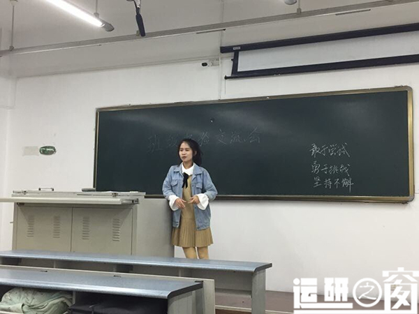 随后班级经验交流会正式开始,张艺同学首先上台分享了自己本科期间参加过的学术竞赛的经验,如果在准备不充分的情况下参加了第一次学术竞赛,在这之中如何建立自己的信心以及培养起自己对赛事的兴趣,尽管在过程中队伍内可能会产生小摩擦,但是可以通过大家的细致交流和团结一致,克服了困难,顺利拿到名次。