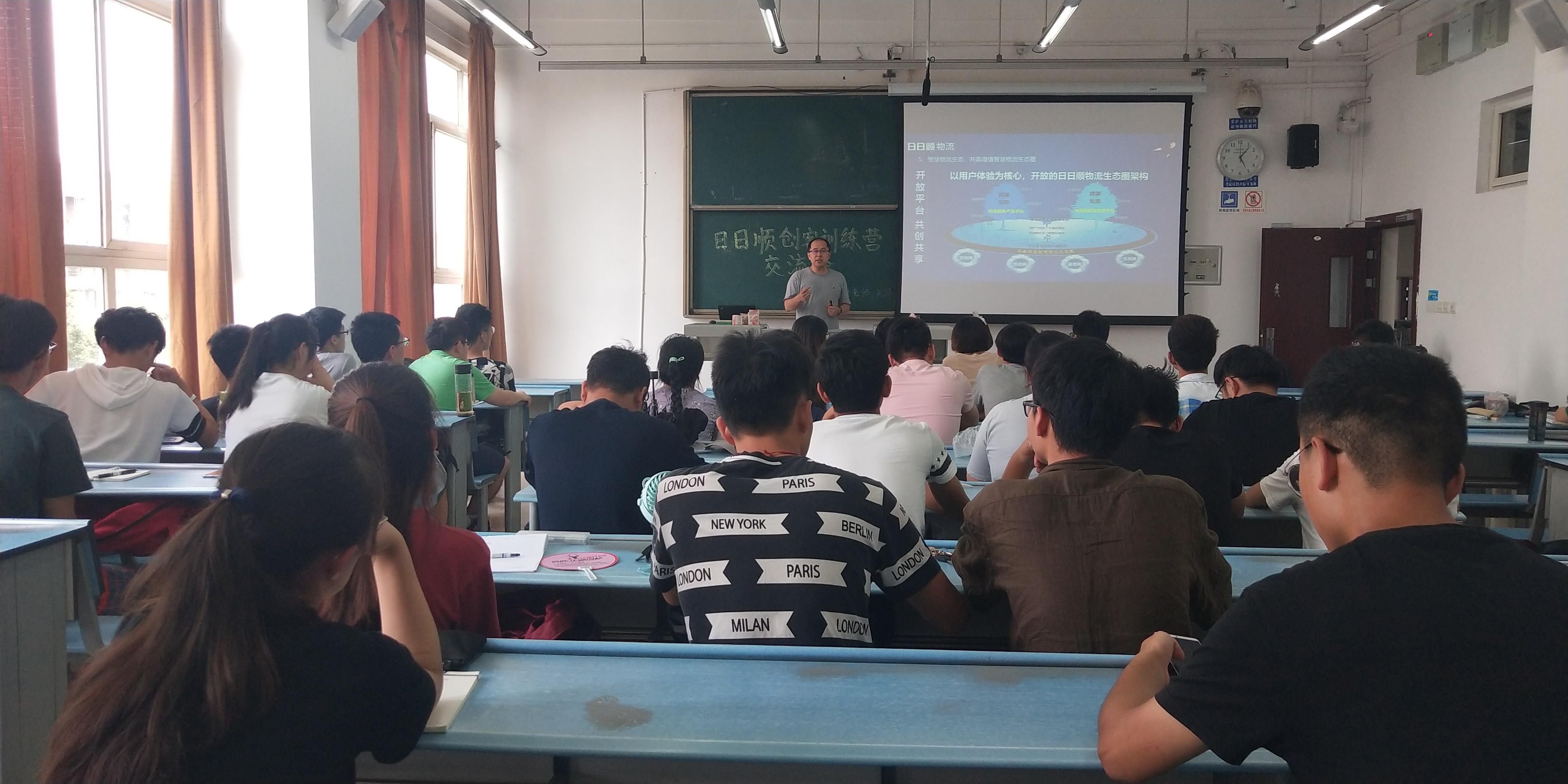 王坤老师主要从日日顺物流企业的发展历程和现有业务模式,日日顺创客训练营比赛本身的特点,以及同学们如何提高自身科创能力三个方面展开讲解。