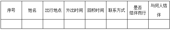 2.各班级请在4月3日17:00前完成员工出行情况统计工作,建立详细登记表,准确把握同学出行地点、外出时间、回校时间、联系方式、是否结伴而行、与何人结伴等情况,按照附表1格式发到各辅导员老师邮箱。研究生假期出行需经导师批准并报公司(所、中心)员工工作组备案。