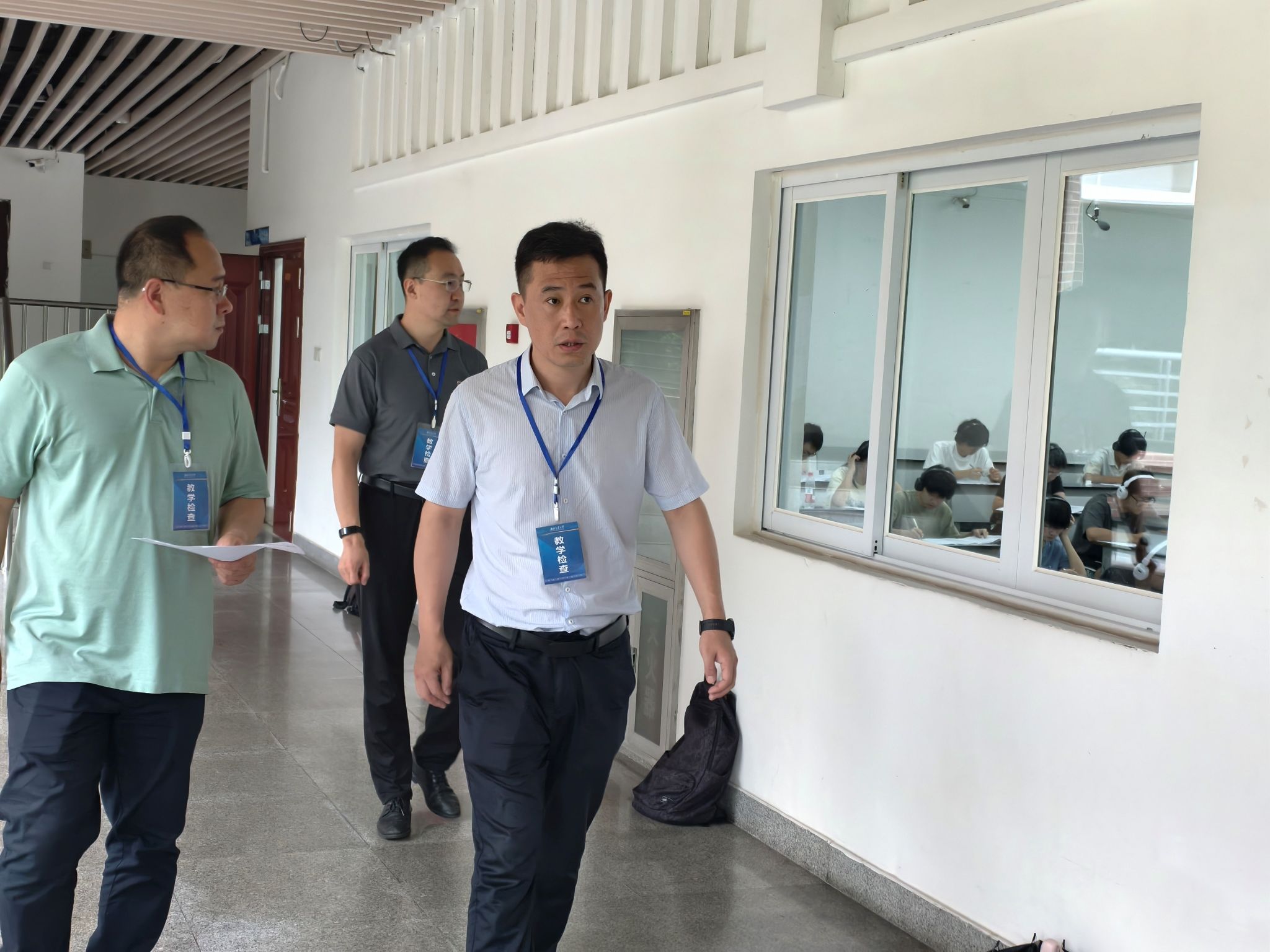 2024-2025学年第2学期本科生期末考试于2025年6月23日至2025年7月4日进行。6月23日上午,公司党委书记张光远、副书记刘继宗、教学主管王坤在教务办、学工组老师的陪同下对犀浦校区一、二号教学楼的伟德体育教师监考的考场情况进行了检查。