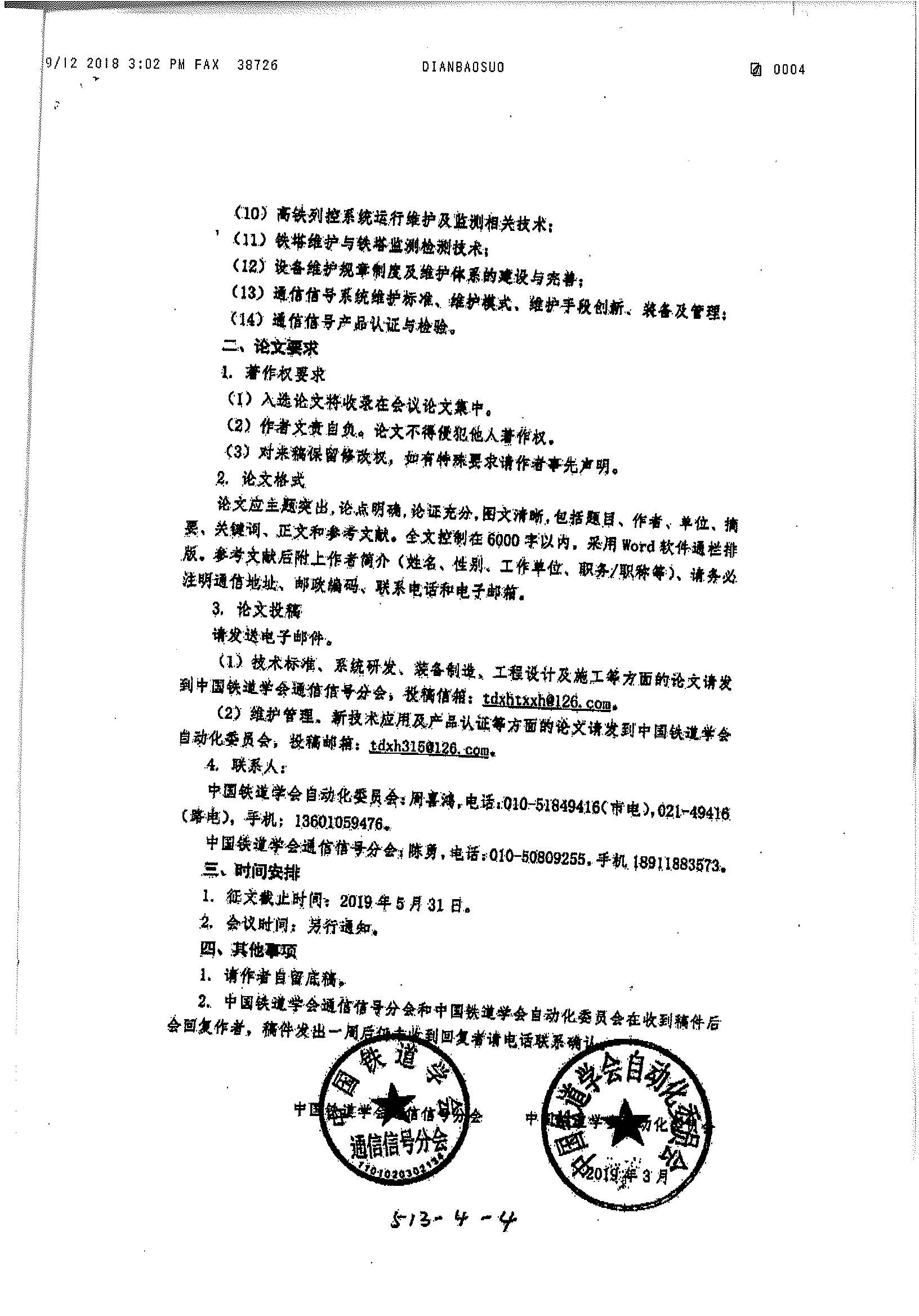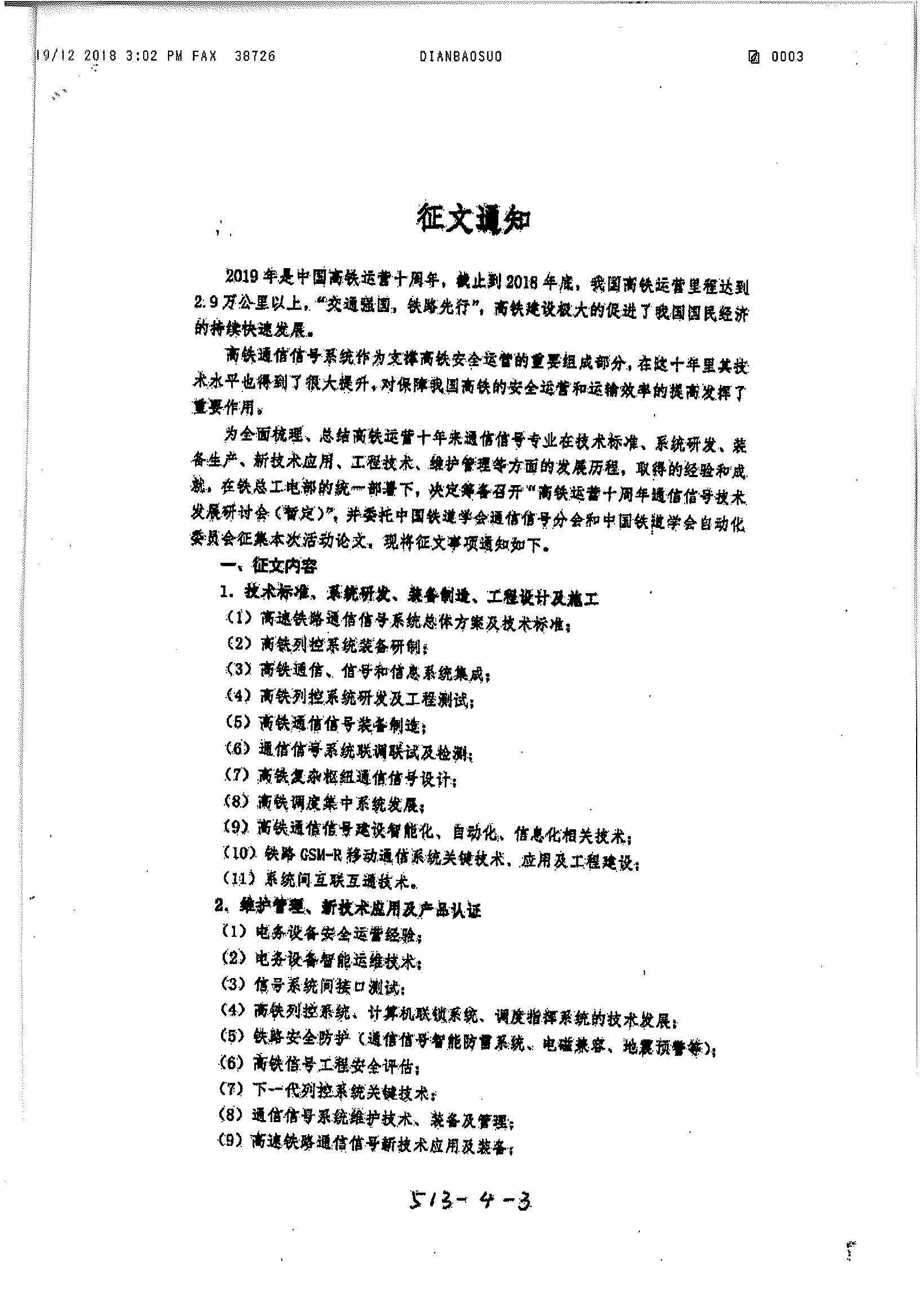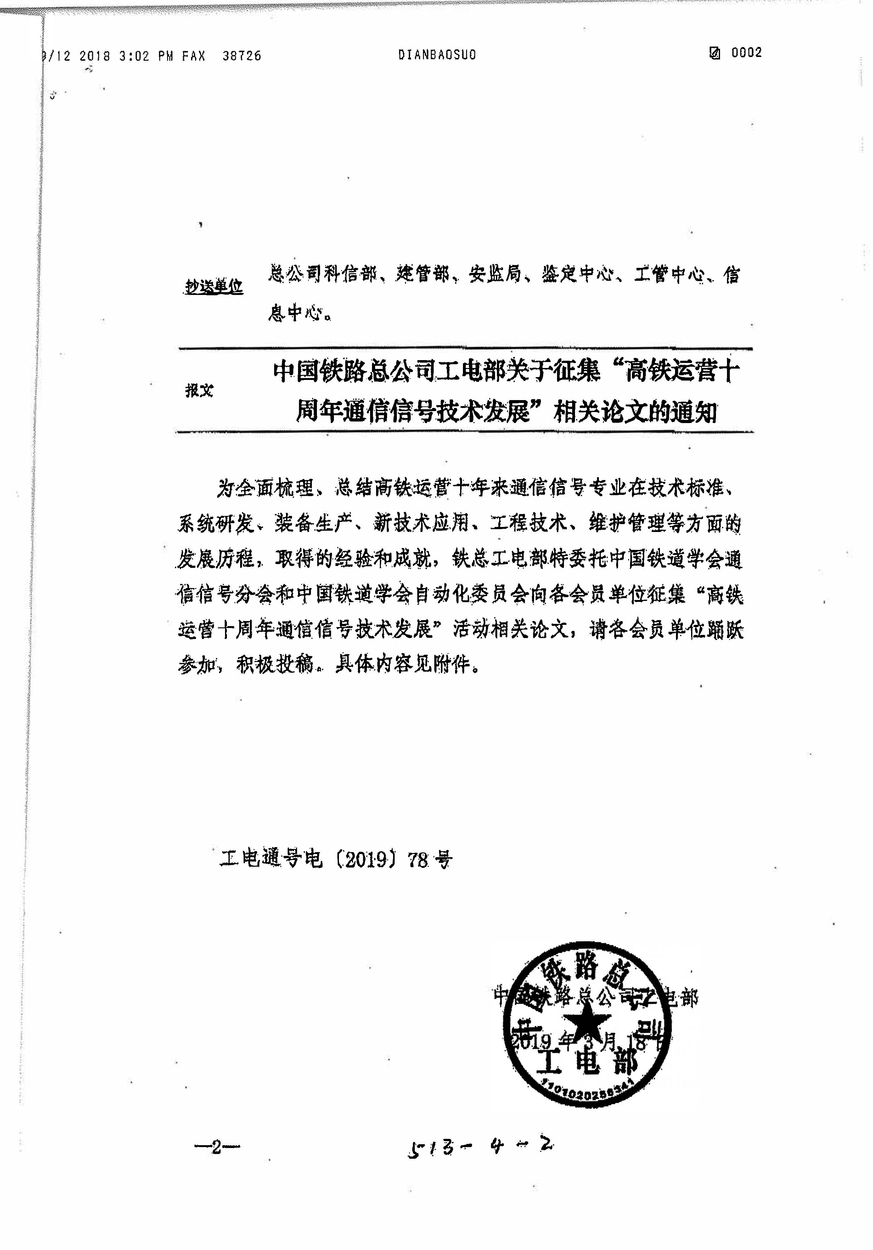 转发《中国铁路总公司工电部关于征集 “高铁运营十周年通信信号技术发展” 相关论文的通知》