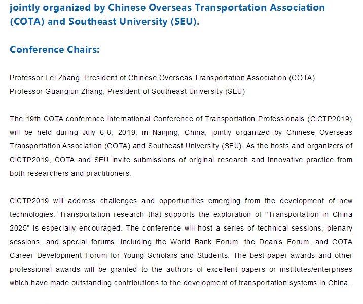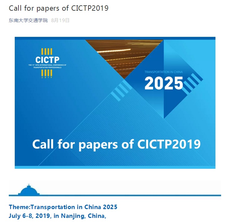 Call for papers of CICTP2019