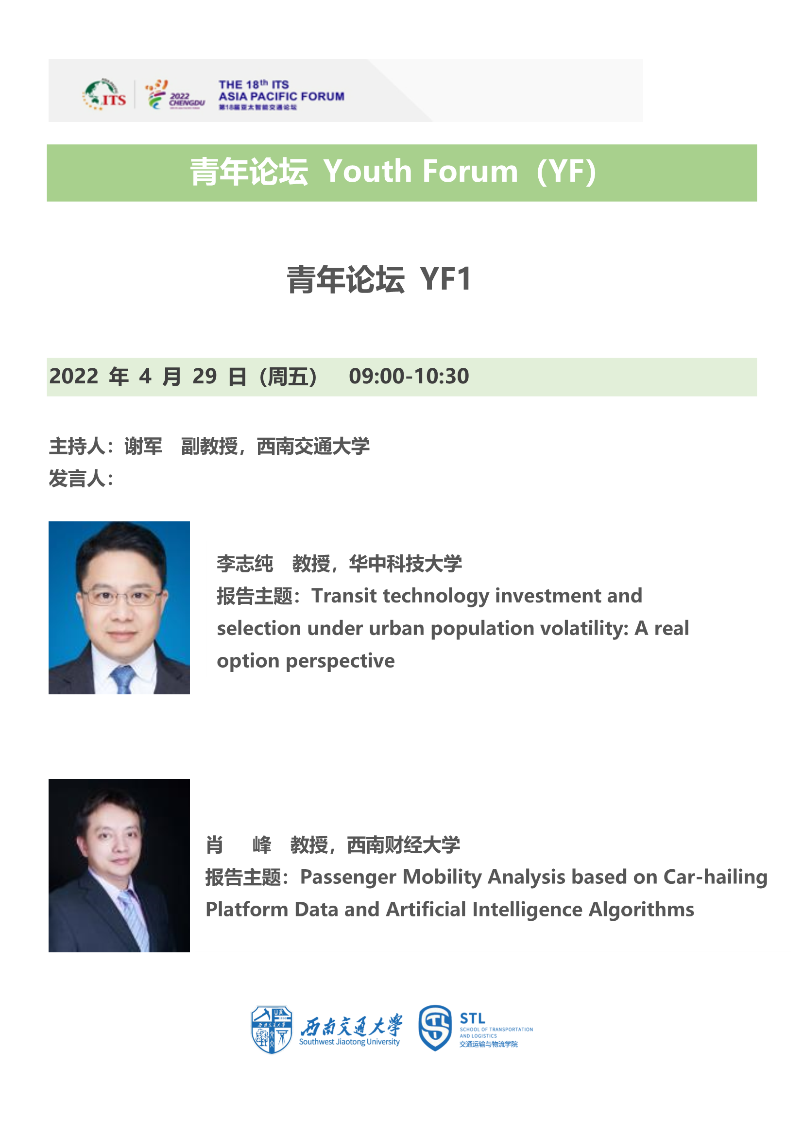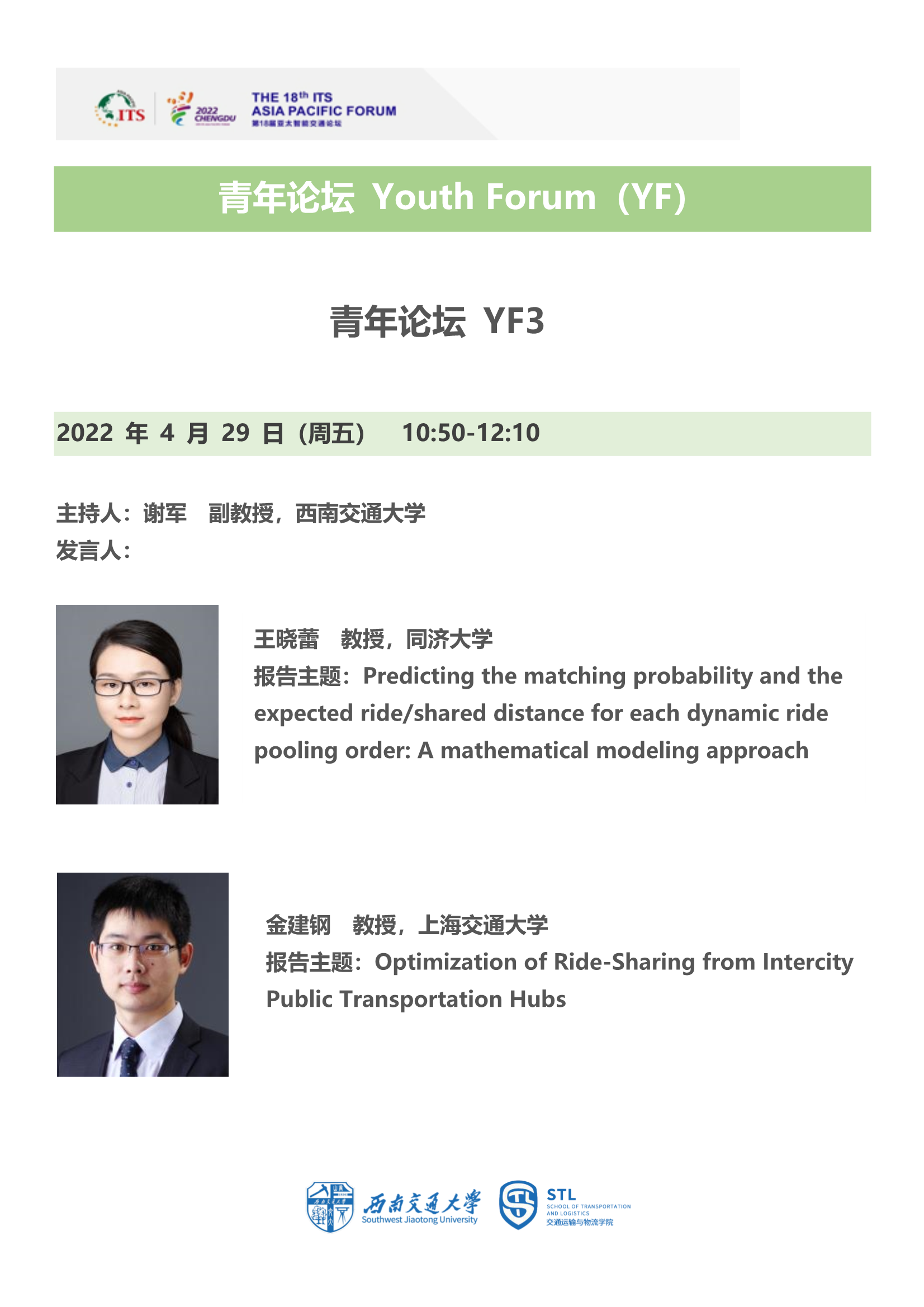 青年学者齐聚线上论剑交通发展,公司将主持第18届亚太智能交通论坛的青年论坛部分,诚邀广大师生参加,多角度多维度探讨智能、绿色、共享的综合交通发展前沿。