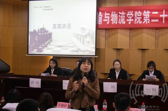 正式比赛开始前,主持人用一段视频简要地介绍了晋级本次决赛的两支队伍,他们分别是正方物流类2020-02班和反方物流类2020-03班。李清滢老师在赛前鼓励了两支队伍,希望做足了准备的队员们能够辩论出最优秀的自己。随后决赛正式开始。