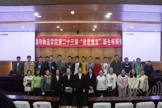 最后嘉宾与获奖队伍的合影留念,宣布伟德体育第二十三届“运思逸言”新生辩论赛决赛圆满结束。