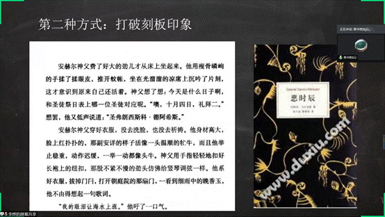 随后,图书馆刘云老师进行书籍推荐。推荐书籍前刘云老师提出了关于选择书籍的四点建议及走进文本的两种方式。她认为,应该选择经典书籍但同时注意警惕代表作的陷阱,应学会建立书籍间的联系,还应学会通读细读相结合,切忌读书时没有自己的想法。疫情之下,在家安静阅读是一个不错的选择,相信这些建议能对同学们有所帮助,使同学们能够更加合理而高效的从书中汲取知识。