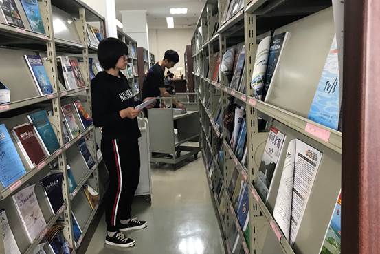 接着志愿者们进入了图书馆执勤活动签到办公室,按照书库老师的分配,大家以小组的形式展开活动。随后,各小组开始进行期刊的管理工作以及报纸的陈列管理工作,各个小组分别参与到整理书刊、报纸更新、书架管理的任务中去。