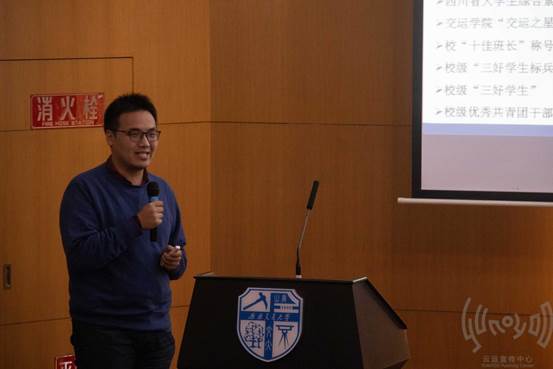 报告会以一段视频开场,带领观众走进了交运之星一天忙碌而充实的生活。随后王炎冰老师发表讲话,他肯定了获得交运之星的同学们的成绩,同时也希望大一新生可以挖掘更多优秀前辈取得优异成绩的方法,脚踏实地,把他们当成学习的目标与榜样。