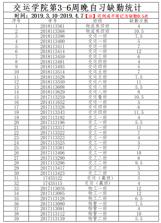 附:第3至第6教学周晚自习缺勤超过1/3员工名单