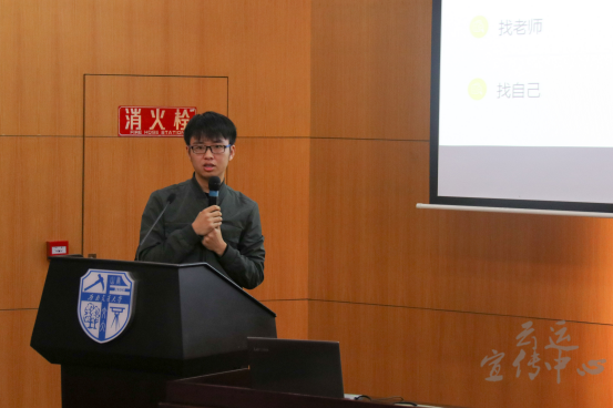 沈子力告诫同学们,切忌眼高手低,应看重薄弱环节,他以自身经验总结了相关科目的难点以供同学们参考,他认为备考期间紧迫感是一种动力,普遍复习是对知识的反复打磨。刘小龙从不同角度介绍了考研经验,他向同学们介绍了寻找考研信息的方法,分析了考研辅导班的弊端。最后,刘小龙还分享了备考英语的小窍门。叶子学姐将考研比作修建房子,告诫大家切忌急于求成、“断节式”和“攀比式”学习。随后,她具体分享了自己数学学习的历程以及自己的学习方法。
