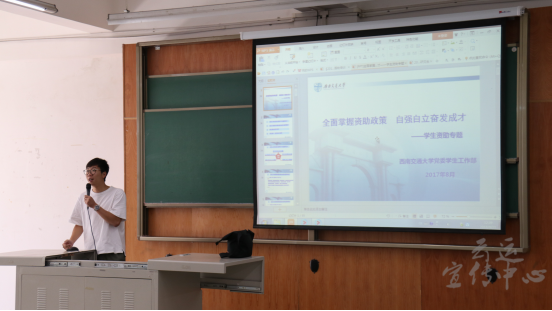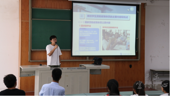 首先由李林卿老师讲解国家资助政策体系的主要内容。李林卿老师先向新生简略地介绍了高校奖助学金的分类、各类奖学金的可获奖人群和评定办法。其中高校奖助学金主要包括国家奖学金、国家励志奖学金、国家助学金等,多数资助政策针对在校二年级及以上的员工。其中申请国家励志奖学金、国家助学金的员工须是经过公司家庭经济困难情况认定的员工。紧接着李林卿老师着重讲解了公司家庭经济困难员工认定的具体步骤,家庭经济情况认定本着公平、公正、公开的原则,由班级、公司、公司组成三级认定结构,在每年的9-10月严格展开。并强调了家庭经济困难员工认定工作是开展国家助学金评选工作的基础。最后,李林卿老师播放了一个生动有趣的视频,向同学们介绍公司设置唐立新奖学金的历史。