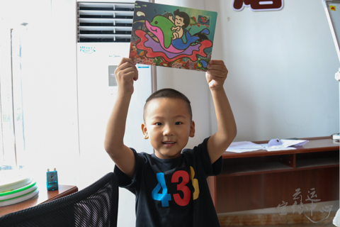 8月17日,实践队员带领孩子们做起最爱的绘画和手工,这也是实践队为孩子们准备的最后一课。孩子们对新鲜事物总有满满的求知热情,层出不穷的鬼马想法,常常带来意想不到的惊喜。一幅幅精美的沙画展现在孩子们眼前,孩子们立刻擦亮双眼,五颜六色的彩沙铺洒在胶面上,绘出了他们探索未知的热忱;做手工时,孩子们和老师一起逐步完成了可爱的公交相框,他们聚精会神的专注模样,举起作品时的骄傲自豪,就是对实践队的最好回馈。