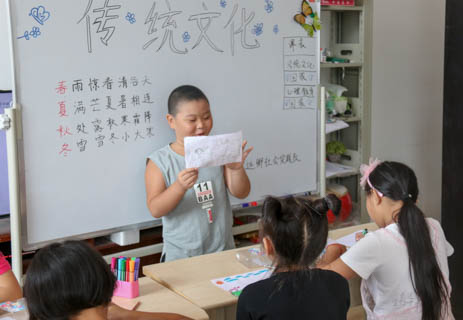 8月14日清晨,马边刚亮起晴朗的天,“蘑菇屋”便传来郎朗读书声:“春雨惊春清谷天,夏满芒夏暑相连,秋处露秋寒霜降,冬雪雪冬小大寒。”