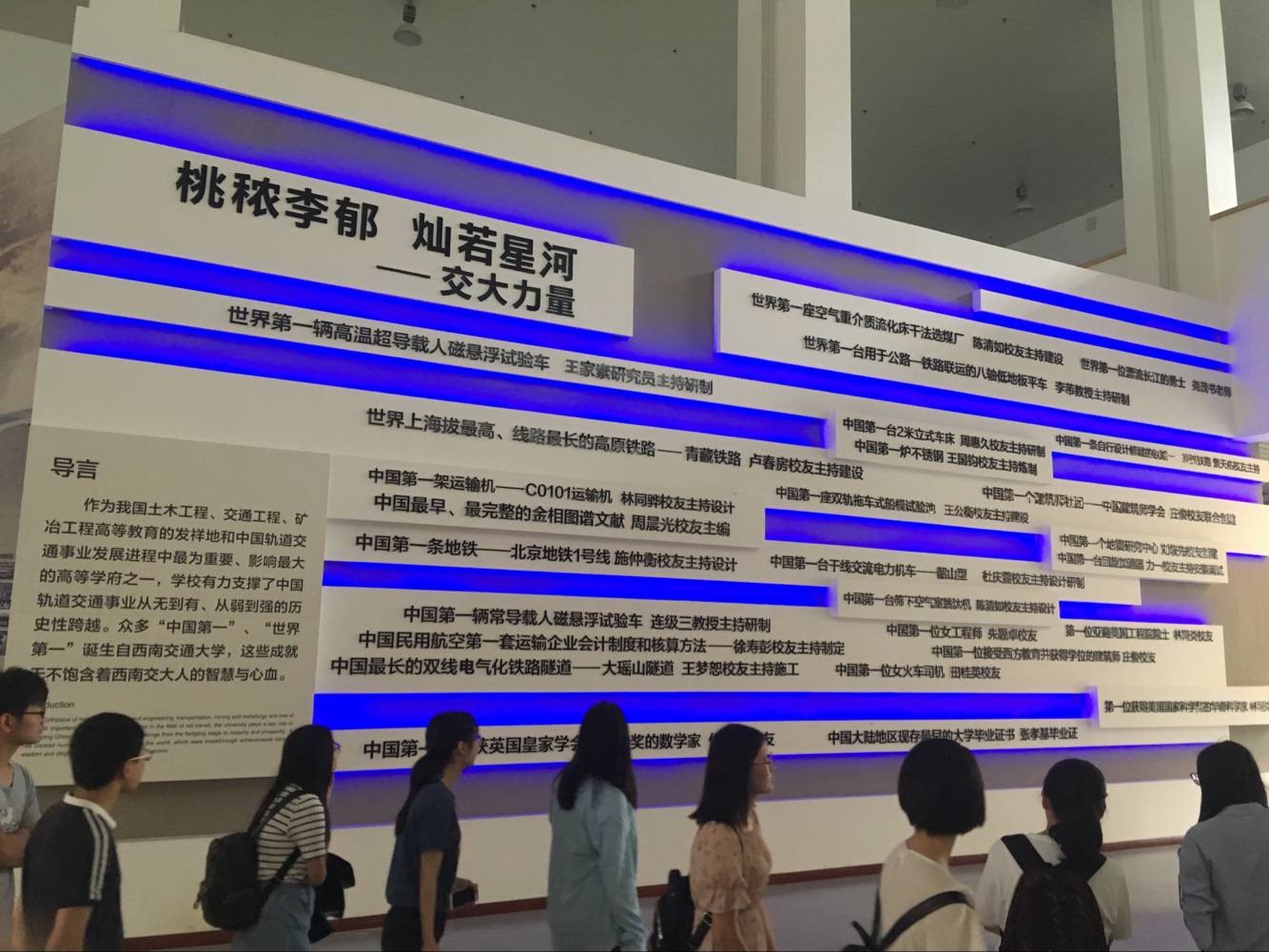 跟随交大颠沛流离的播迁路线,身临其境的通感营造,爱国爱校的跨时空融入,同志们不由自主地站在了广阔的历史视角,勾勒交大辗转五万里的苦难辉煌。展板与实物展品相结合,平面展示与立体展示相结合,传统展示手法与现代化展示手段相结合,校史不再是模糊在岁月里的故事,交大精神不再是八个遥远的文字,30余万员工尤其是共产党员,用自己的汗水和奉献,点滴汇聚而成可歌可泣的交大诗篇,交大党员的责任担当在大家心中凝成一股强大的合力。同志们依次认真参观了序厅、榆关始创、复校唐山、成就斐然、烽火相传、迎接曙光、砥砺前行、创业峨眉、蓉城新篇、交大力量等十个展厅,从公司的建校背景、历史沿革、办学特色、学科特点、历史使命五个方面出发,去深刻解读“竢实扬华、自强不息”交大精神,“严谨治学、严格要求”交大传统和“灌输文化尚交通、文轨车书郅大同”历史使命的校史馆的精神主旨,坚定了争做优秀党员和五有交大人的决心和信心。