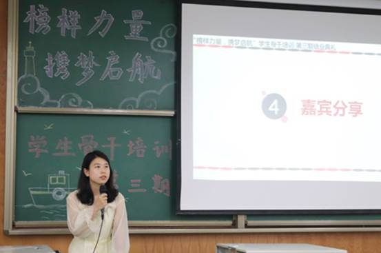 接着,李清滢老师向大家分享了她对团干培训活动的感受。她表示希望通过团干培训这一系列活动让不同班级、不同社团的同学能够相互交流、共同学习并收获友谊,她还希望大家能够通过读书交流找到兴趣爱好的归属,找到能够产生共鸣的知己,让思想碰撞出火花并唤起每位同学关于经典的独特的想法。团干培训活动就是在打造这样一个长期、稳定交流平台的同时对团干培训学员进行团学工作的培训与辅导,借此打开一扇门,让同学们在知识的海洋中扬帆起航、勇攀高峰!