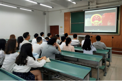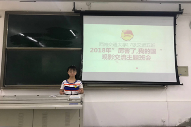 2017级交运三班团支部不仅在一食堂门口集中观看了《厉害了,我的国》,之后还开展了有关影片的主题班会,并有同学在班会上分享自己的心得,使得影片的精神深入人心。