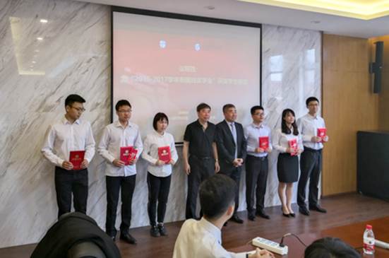 随后,马驷副经理宣读了2016-2017学年新国线奖学金获奖员工名单,共26名本科生与研究生获得了此次新国线奖学金的特等奖、一等奖、二等奖、科创学术优秀奖以及研究生奖学金。王永立先生与郝建平书记为获奖同学颁奖。