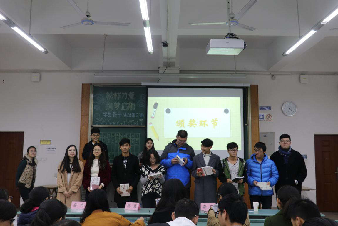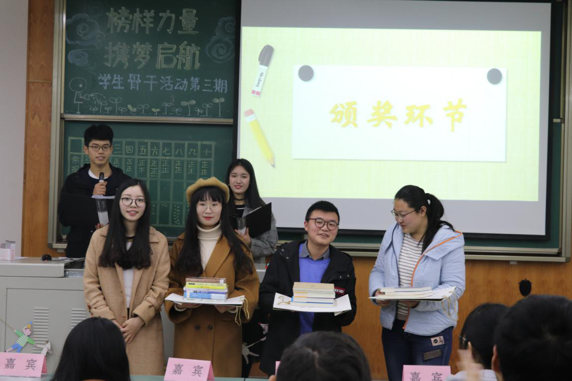 本次大会位于前三名的班级分别是八班、二班和三班,邀请了甘升碧老师为他们颁奖。同时其他班级也派出了代表上台领取奖励。另外,每个参与者在参加活动时,都领取到一个号码,在每个环节结束时,我们都会请嘉宾随机选取一个号码,作为幸运号码,拥有幸运号码的同学也获得了我们的精美礼品。