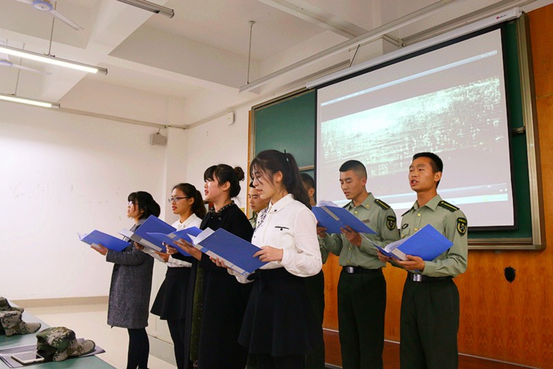 在第一环节的学习结束后,党员发展对象们分小组进行了社会实践学习成果展示。各小组在社会实践活动开展前以小组为单位分别进行了十九大关键词学习讨论,并围绕十九大通过诗朗诵、唱红歌、PPT展示等多种方式向大家展示了学习成果,表达了对祖国的热爱和成为一名党员的决心。其中10班同学们深情的《建军九十周年抒怀》诗朗诵与歌曲《强军战歌》表现精彩,获得了老师的一致好评。