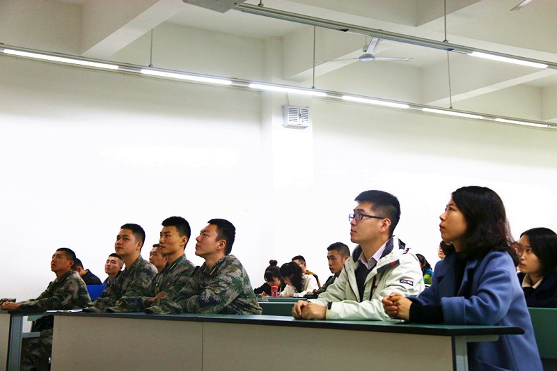 刘佳文同学首先以“砥砺奋进的五年”为主题,由点及面的介绍了过去五年里我国在我党的领导下取得的辉煌成就,向大家清晰明了地阐述了十九大多项重大改革的契机。李颖同学随后以十九大“九个方面理论分析与政策指引”中的“坚持走中国特色强军之路”为切入点,向大家介绍了我国在新形式下的强军目标与我国在新的历史起点上推进强军事业的根本要求。舍我其谁的大国风范与铿锵有力的讲解,让参加培训的党员发展对象们看到了我国未来新时代军人的飒爽英姿,激励了他们爱党爱国的情怀。演讲完毕,全场爆发出热烈的掌声。紧接着,吴宇桐同学以“不忘初心,牢记使命——端正入党动机”为主题,向大家介绍了“习近平新时代中国特色社会主义思想”的相关内容,用自己入党以来的亲身经历与发展对象们交流新时代青年应如何摆正态度、用正确的思想武装大脑,呼吁党员发展对象们在以后的工作中要严谨务实,不忘入党初心。随后以视频“习近平为你描绘新时代”作为本次演讲的结尾。