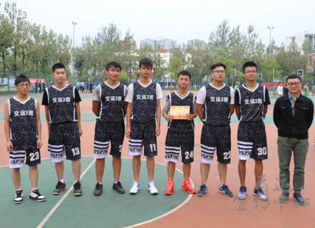 祝贺交运5班荣获本次新生杯篮球赛的冠军,同时也要向交运3班这种顽强拼搏,奋斗不息的精神致敬。赛后的颁奖仪式,由员工会主席刘璐为季军物流3班颁发奖状;员工会指导老师雍腾老师为亚军交运3班颁发奖状,为冠军交运5班颁发奖杯和奖状;刘熙煜同学为本场最有价值球员——来自交运5班的乔宇同学颁发奖状和奖杯。