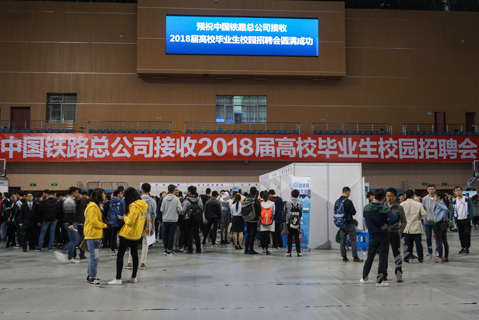 10月13日上午9:30,中国铁路总公司接收2018届高校毕业生校园招聘会在犀浦校区体育馆成功举行。包括成都铁路局在内的18家用人单位参加招聘会,它们为广大毕业生们提供了交通运输、物流工程等众多专业对口岗位。