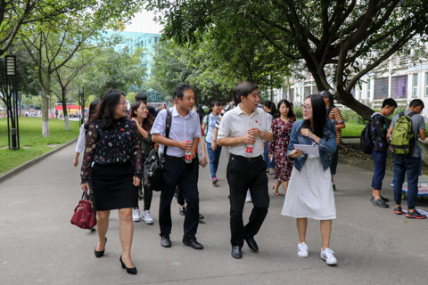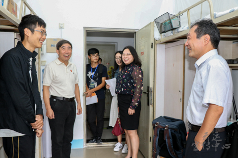 来到女生宿舍,领导们都表示眼前一亮,马驷副经理更是对女生宿舍内细心别致的装饰大加称赞。李书记亲切地和同学们谈起国庆的出行安排,郝书记也提到了外出的安全问题,对同学们表达了无微不至的关心。