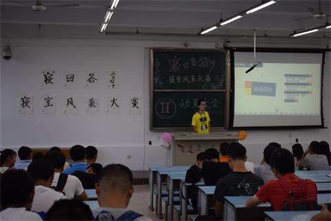 接着,李冠辉利用PPT给现场观众展示了往届寝室装潢的风采,一张张美丽的海报、一个个用心的小饰品,装饰出了一个温馨、舒适的寝室,也是大会的气氛更加轻松愉悦。展示之后,他向大家介绍了本次大赛的具体赛制:第一阶段为寝室装潢、第二阶段为才艺展示、决赛为导师助阵。同时,他也向大家详细说明了本次大赛从初次进度检查、二次进度检查、初步评审环节到寝室大赛决赛的整个流程。整个活动的脉络至此梳理完毕,大家都在笔记本下记录下了具体的时间节点,并对大赛表示期待。