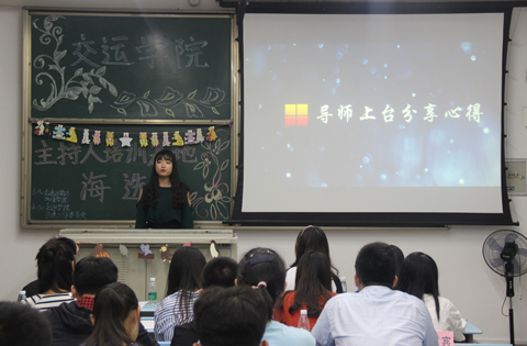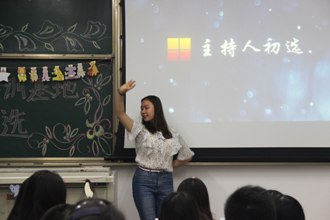 在自我展示环节中,同学们可谓是八仙过海,各显神通。有的用嘹亮的歌声展现自己活泼开朗的性格,有的则用别具一格的诗朗诵体现一名主持人具备的沉稳气质。此时此刻,无论是为了锻炼口才,还是突破内向的性格,他们都勇敢地站在了主持人的舞台上。