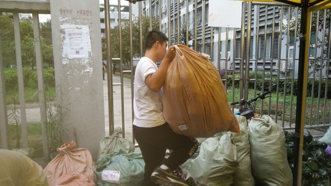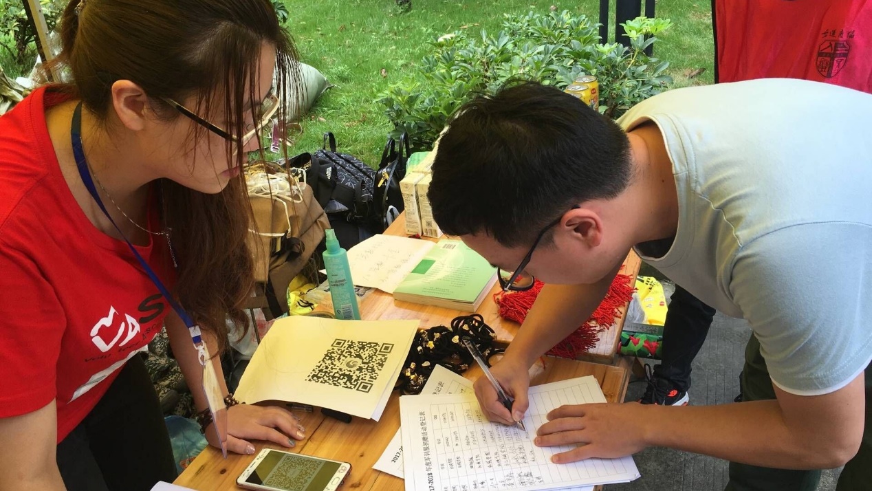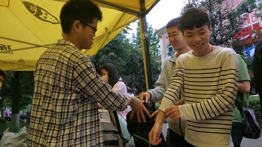 今天同往年相比,活动开展难度更大,因为今年的2017级新生分布在犀浦和九里两个校区,需要在两个校区安排志愿者设置回收点。所以两个主办协会提前做好了策划与分工。在17号当天,志愿者分为两支队伍:一支队伍在负责人的带领下,早上提早从犀浦校区坐校车前往九里校区进行军训服回收活动;剩下的另一只队伍留在犀浦校区进行回收活动。