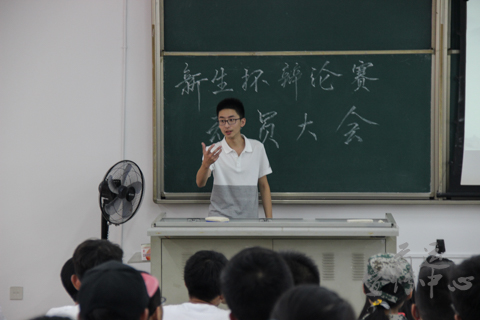 本次动员大会主要围绕两个方面展开,即何为辩论以及如何打好辩论赛。宋磊同学向新生介绍了什么是辩论以及如何组建辩论队,并详细讲解了交大辩论赛的赛制。据介绍,本次“新生杯”辩论赛与往年相同,仍以班级为单位在公司内部展开。辩论赛分为小组赛和淘汰赛两段,小组赛按积分排名,前八名的班级进入淘汰赛。另外,每场比赛还将评出一名最佳辩手。