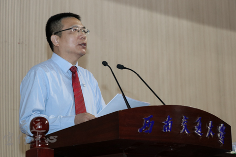 第三项议程,由教师代表,伟德体育经理刘晓波教授讲话。刘经理指出,大学意味着将来的一生都会与西南交大息息相关;意味着每个人不但是交大的受教育者,同样也是建设者;意味着每个人开始拥有独立完整的责任。作为交大人,我们应该明白“我们是谁”、“我们来自何方”、“我们的未来在哪里”,志存高远、脚踏实地。