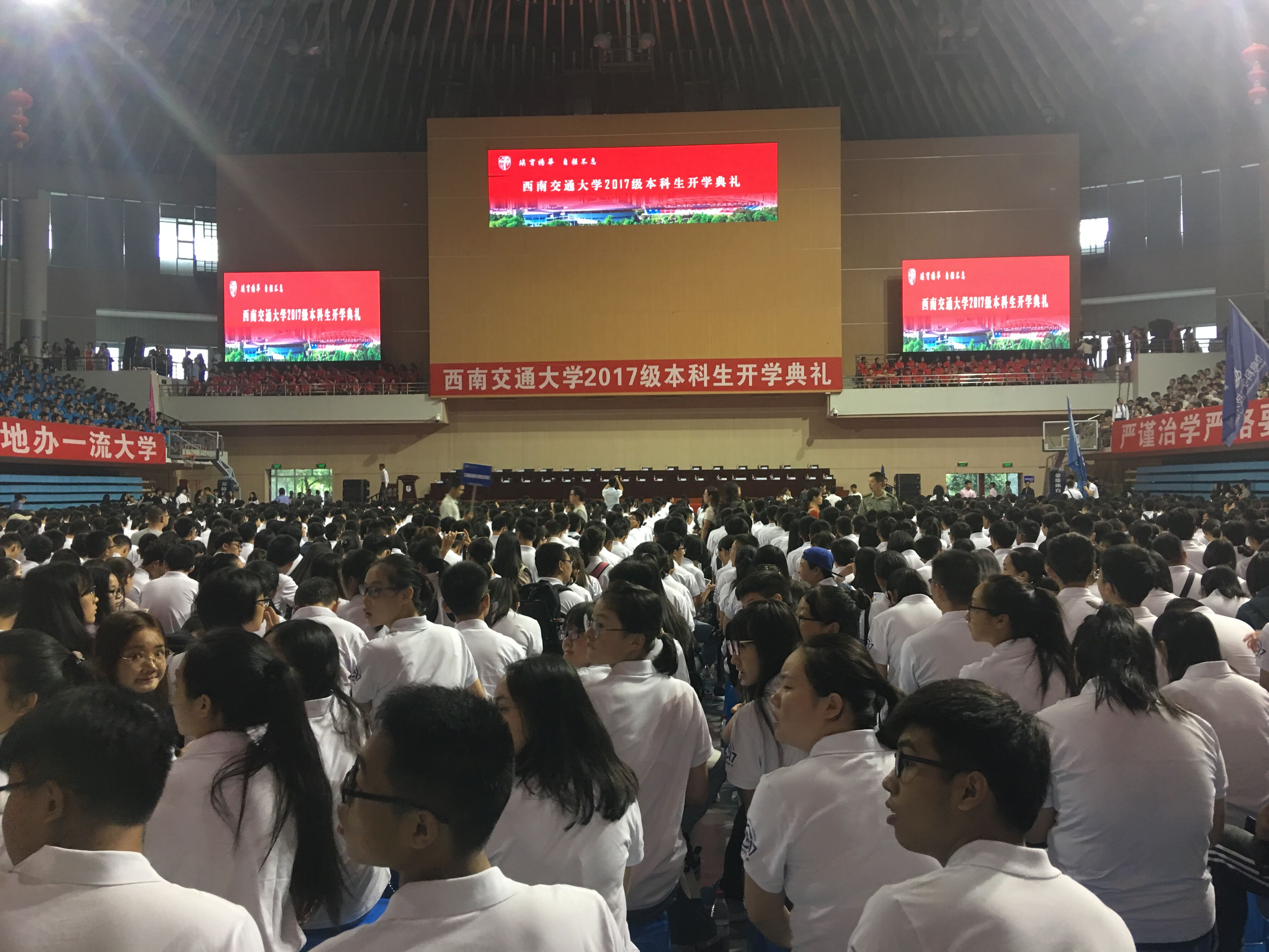 典礼开始前,一段幽默风趣的视频带领新生们走进交大的点点滴滴,从交大的三个校区到犀浦的每一处风景,感受交大之美。典礼由校常委党委沈火明教授主持。第一项议程,全体起立,奏唱国歌。大会第二项,由徐飞董事长讲话。徐飞董事长从自觉、自强、自律三个方面寄于自己对2017级新生的殷切期盼。希望大家将“电筒、尺子、闹钟”作为自己大学入学的“三件”,让自己混沌的精神世界成为一片光明,坚定自己前进方向,持之以恒,奋发图强。