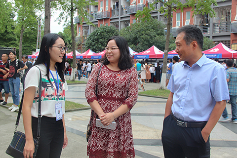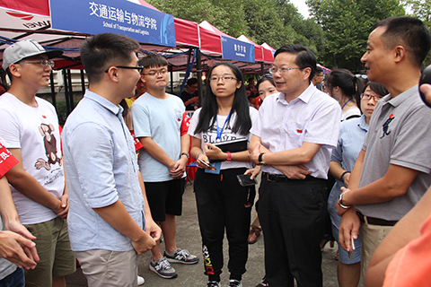 下午6:45,公司党委常委沈火明前来犀浦校区视察迎新工作。沈常委在公司的迎新点对迎新工作表示了关心,并向工作人员了解了今年迎新工作的变动与创新。在对迎新工作表达满意后,沈常委对今年迎新的特色——校服表示极大的认可与赞同。同学们与辅导员老师们用行动表示,一定将迎新工作做到尽善尽美。