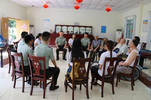 在既定的安排下,疗养院调研工作也如期开展,同学们结合前期资料收集对疗养院建设、伤残军人现状进行了实际调研,并深入走访了部分伤残军人了解日常生活,收集资料,为后续开展党员爱国教育座谈会做准备。