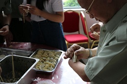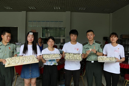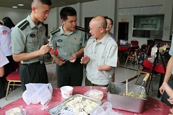 下午的活动按照计划顺利开展。同学们准备了干净卫生的食材,在疗养院食堂工作人员的帮助下亲自动手为伤残军人前辈们包饺子。清洗餐具、和面、擀饺子皮、包馅料,大家有条不紊地为前辈们准备晚餐,不少伤残军人前辈见此情景都要求加入到同学们的队伍里来,在大家伙儿的帮助下,伤残军人前辈们不落下风,在场氛围热烈活跃、其乐融融。老前辈们虽命途多舛,但精神不息、坚强乐观,耄耋之年骨子里依然喷发着铿锵力量,身残志坚的精神深深鼓舞了在场每个人。