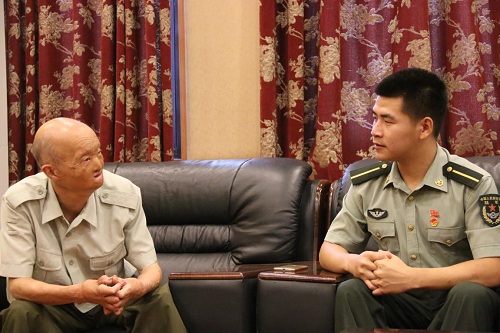 其中易如元老前辈给同学们留下了深刻印象。1951年5月28日,参军还不到一个月,16岁的易老随部队入朝,1953年3月17日早上,当第五次战役基本接近尾声时,危险来得毫无征兆,一声巨响下就失去了知觉。醒来时,他发现自己趴在地上———“当时我就没有意识了,都没听到响,但醒来还在阵地上,同志把我牵着走,我看不见,鼻子也断了,出气呼呼的响,左手也不在了。”易老对同学们讲述到,“然后我被四个战友用门板抬下了阵地,除了左手,还失去了右眼的光明,即使是左眼也只有0.04的视力……”“前辈们用热血和生命为我们打拼下如今和谐安定的中国,您们中的每一位都是我们心目中的英雄!”一位随队同学发出由衷的感叹,肺腑之言感染了在场的每一个人,大家不禁为老前辈们鼓掌,感谢他们的牺牲,感谢他们的教导。队内多才多艺的张同学也特地带来了吉他,为前辈们即兴弹唱,现场充满欢声笑语,看到作为祖国未来担当的我们良好的精气神,前辈们表达了他们内心的欣慰。