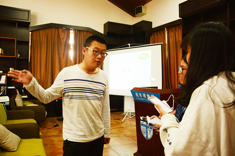 活动结束后,陈宇帆同学也接受了记者的采访。他为此演讲准备了两周,包括挑选照片、撰写讲稿。他表示,由于中国铁路体制与教育体制限制,铁路文化在员工群体发展不足,为此他也鼓励热爱轨道交通的同学们多多参与其中,为中国铁路文化建设做出贡献。