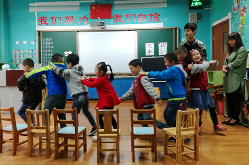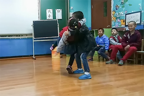 第二节课后,小朋友们在老师的带领下表演了手语歌《众里寻你》,动作可爱优美。两个小朋友更表演了双人舞,虽然他们听不见华丽的音调,但他们精准的动作,优美的舞姿都在向我们展示属于他们的音乐世界。