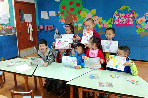 最后,代表们和孩子们一起作画,画画是表现内心情感的主要方式,奇妙的构想,斑斓的色彩,在纯白的画纸上绽开,一个又一个美好的世界在大家面前展现。