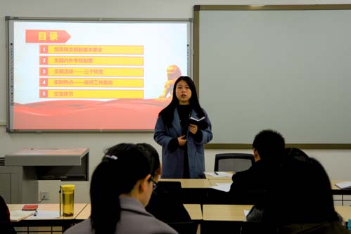 第三个环节中,公司员工助理组织员于雪婷同志详细介绍了新学期党支部活动的三个转变,她通过生动形象的例子讲解了党支部活动应遵循的宗旨,即员工党支部活动应该首要明确活动的受众群体,以此定位活动发挥的效能和开展的方向,从而通过活动全面提升党支部在同学们中的影响力.