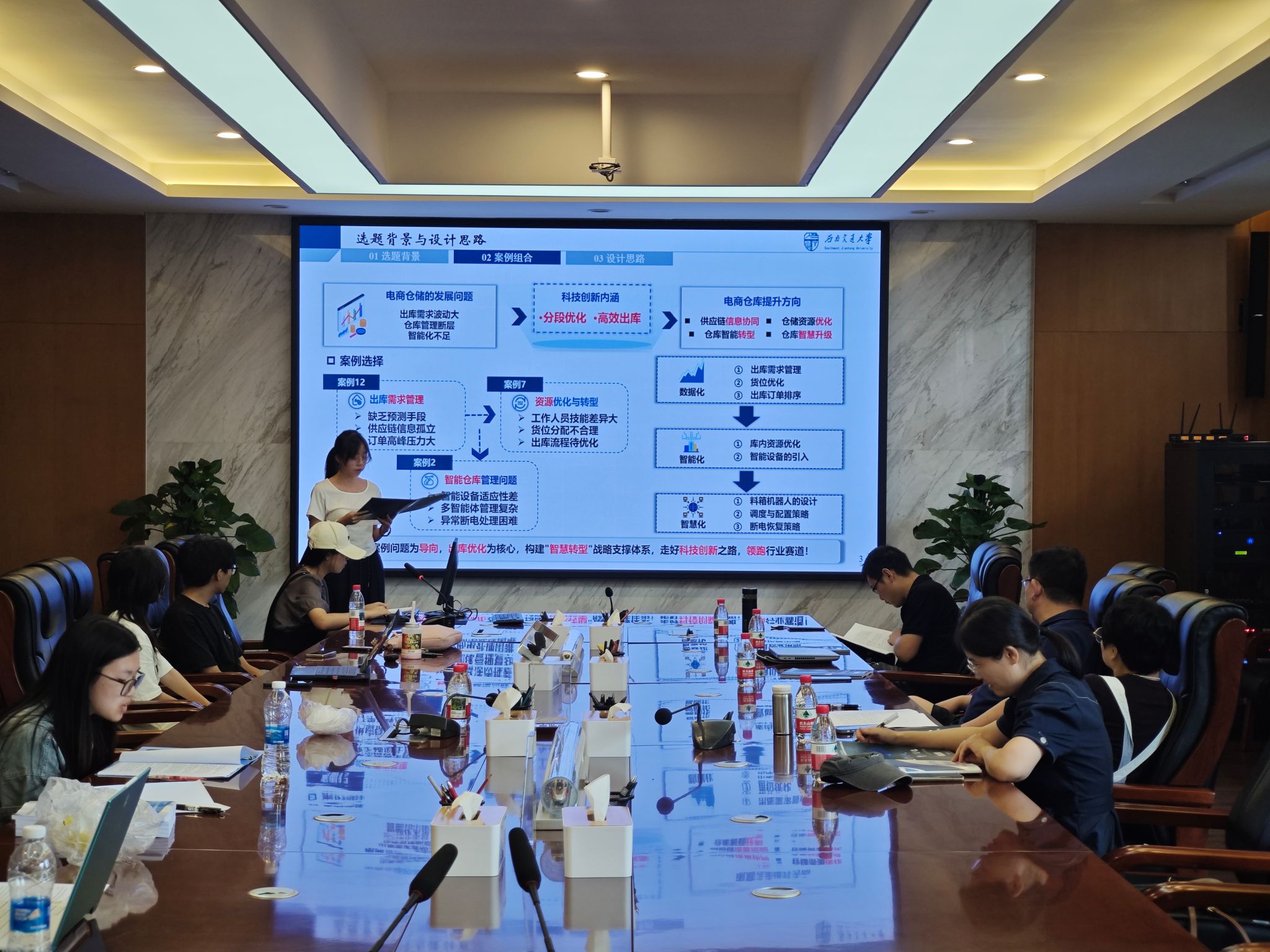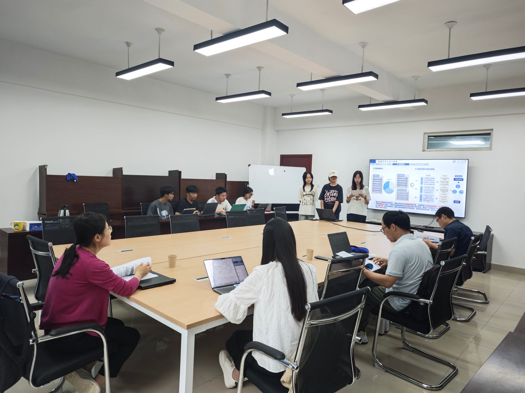 实地考察结束后,公司于7月11日组织复赛辅导。经过前期知识积累与实地学习深化,各参赛队伍在方案呈现上取得显著进步:仿真演示更为直观生动,建模与算法求解过程严谨清晰,应用场景构想明确具体。各队在优化初赛案例组合思路的过程中,着力聚焦方案完善存在的技术瓶颈与逻辑难点。