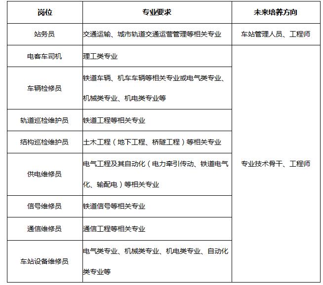 根据公司发展和运营筹备需要,杭州地铁运营分公司现面向各大院校招聘以下岗位: